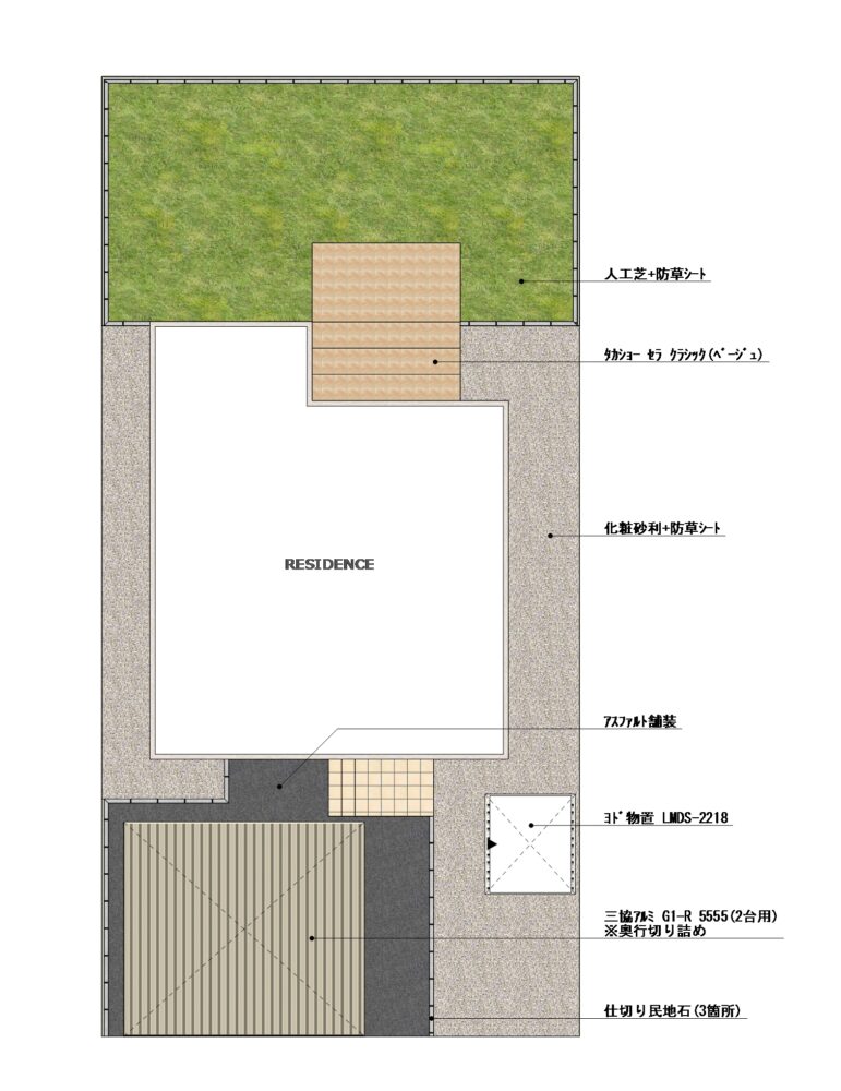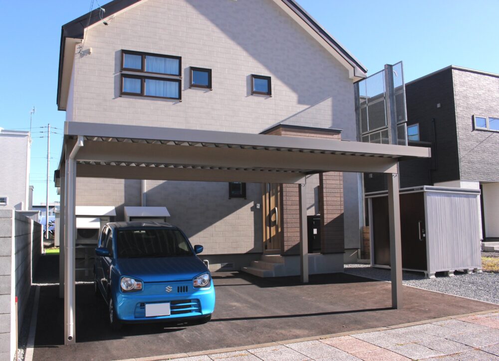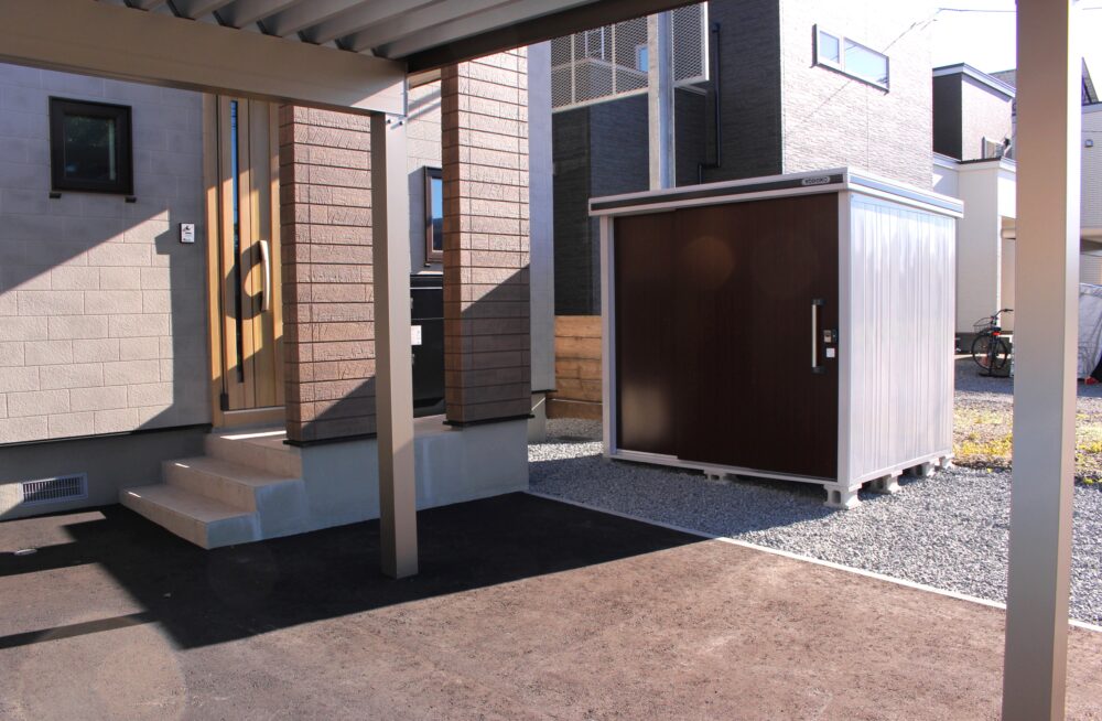 建物前面には カーポートと物置を