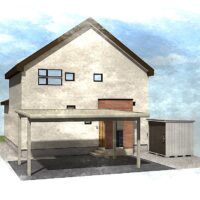 建物前面には カーポートと物置を